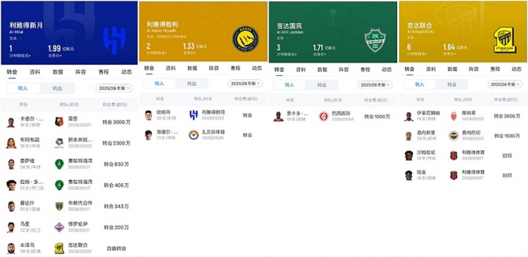 国家队和国青队均战绩不佳,沙特球迷对PIF疯狂购买外援的行为提出了质疑。迫于舆论的压力,沙特足协正在考虑进一步细化U21规则,并计划在今夏的世界杯结束后,引进大量正值当打之年的欧洲联赛球员,更换三年前引入的这批老将(C罗、本泽马等人),这些都需要在完整的休赛期内实现。经过了持续三个赛季的狂飙突进之后,沙特联赛在这个冬窗进入了“调整期”,原本就在Big4中处于弱势地位的利雅得胜利、吉达国民等队自然就没有足够多的资金引援了。